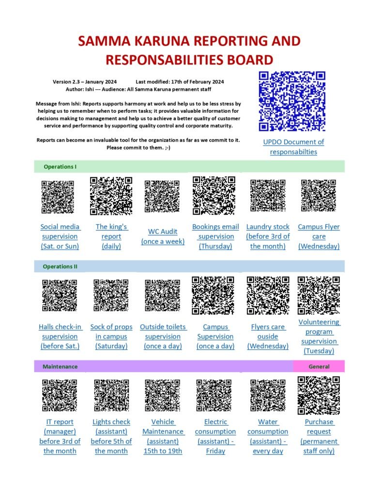Follow is the Reports and Reponsabilities document where you can scan the reports related to your role and fill them in as well as to access the Roles and Responsabilties spreadsheet where you can find a detailed description of the responsabilities of every member of the school per role and area.